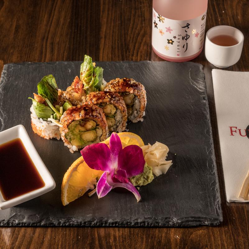With cucumber, avocado, lettuce, masago, mayo, and eel sauce