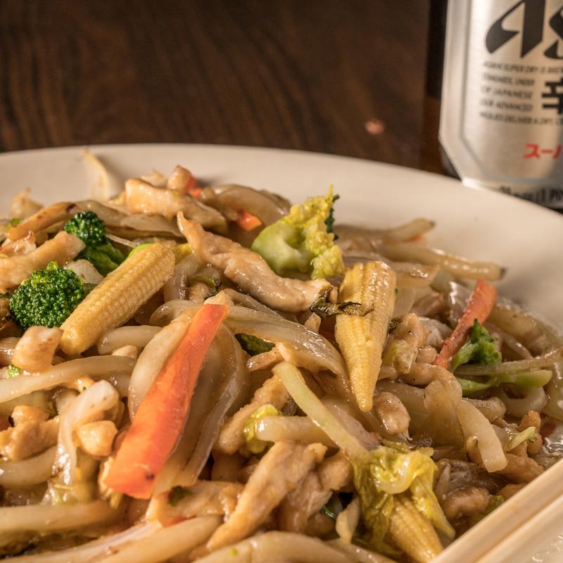 Stir fried thick noodle, choice of beef, shrimp or chicken