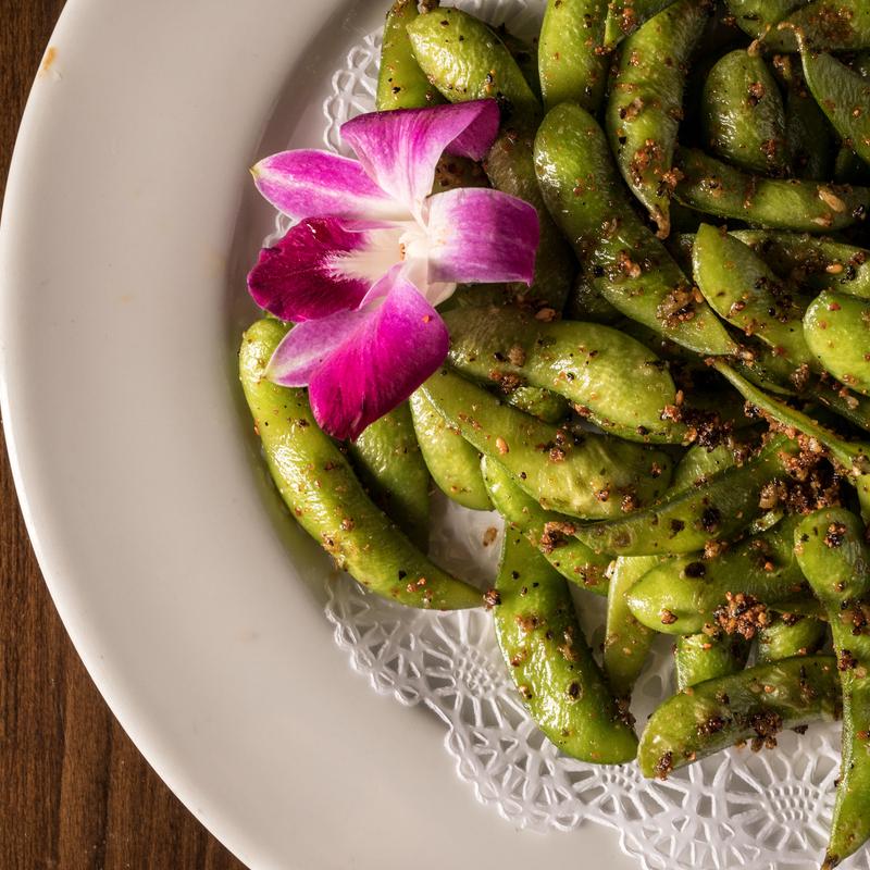 Steamed young soy beans